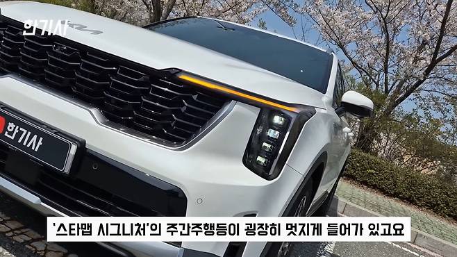 또 다른 장점으로 실외 디자인이 되게 예쁘게 바뀌었는데, 기존 4세대 쏘렌토의 헤리티지를 바탕으로 더욱더 볼드하게 다듬어진 실루엣 디자인이 인상 깊어요. 특히 셀토스, 쏘렌토, 카니발로 이어지는 통합된 전면부 디자인이 기아 자동차가 앞으로 조금 더 고유의 아이덴티티를 다듬어 간다는 이런 느낌이 들어서 굉장히 좋아 보인다고 저는 생각을 합니다.
