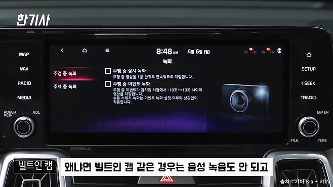 근데 빌트인 캠2를 실제로 넣어보니까 생각보다 이게 괜찮더라고요. 보통 현대기아차의 빌트인 캠 옵션 같은 경우는 많은 차주 님들께서 선택을 안 하시는 약간 계륵 같은 옵션이거든요. 왜냐면 빌트인 캠 같은 경우는 음성 녹음도 안 되고, 정보도 많이 없어서 보통 안 넣으시는데요. 근데 그것은 빌트인 캠1 시절이 그랬던 거고요. 이번에 페이스리프트 되면서 빌트인 캠2로 바뀌었는데, 빌트인 캠2 같은 경우에는 음성인식 되고 음성 녹음도 돼요.