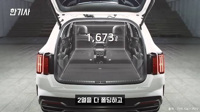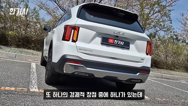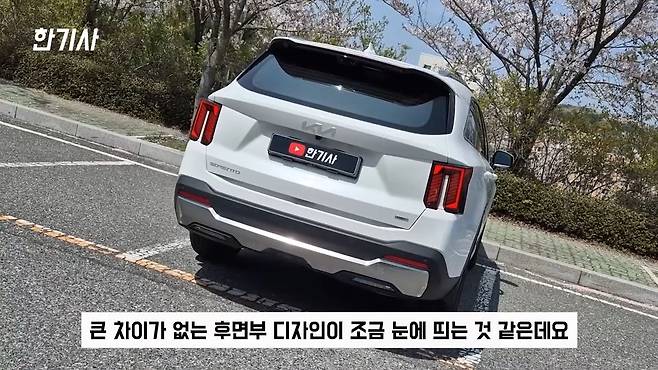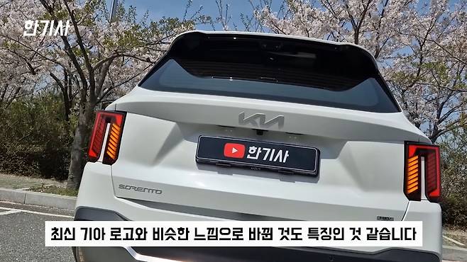그리고 후면부는 굉장히 많이 바뀐 전면부 대비 큰 차이가 없어요. 그런 후면부 디자인이 조금 눈에 띄는 것 같은데요. 특히 테일 램프가 굉장히 예쁘게 바뀌었거든요. 이전 쏘렌토도 예쁘기는 한데, 약간 'ㄷ'자로 이어지는 식으로 미등의 디테일한 패턴이 변경이 됐어요. 약간 대각선으로 빗살 무늬처럼 LED를 넣어놔서 뒤에서 보면 굉장히 예쁘거든요. 그래서 저는 굉장히 마음에 들어요.