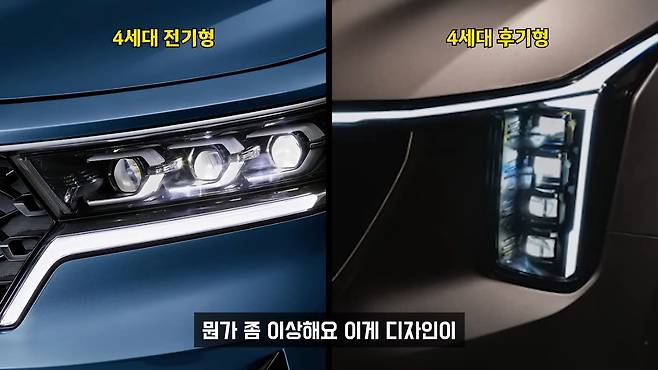 하지만 솔직히 저는 전면부가 페이스리프트 되기 전 전기형의 앞 디자인이 훨씬 더 이쁘다고 생각을 하는데, 주간주행등도 되게 날렵하게 예쁘고 헤드라이트도 3개가 나란히 딱딱딱 정렬되어 있는 게 되게 예뻤거든요. 근데 'ㄱ'자 주간주행등에 세로로 헤드램프를 박으니까 디자인이 뭔가 좀 이상해요.
