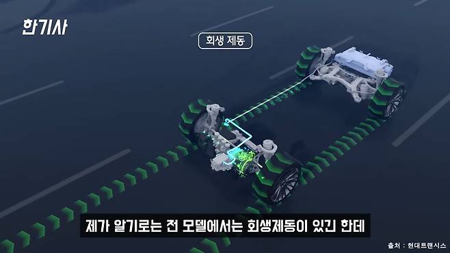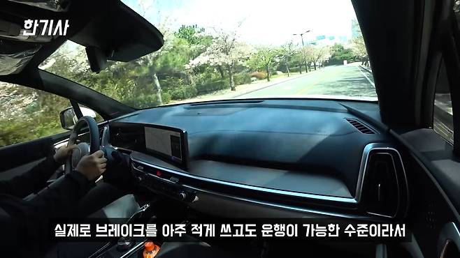 또 다른 장점으로 회생제동 시스템이 있는데, 이거를 3단계까지 조절을 할 수가 있습니다. 제가 알기로는 전 모델에도 회생제동이 있긴 한데, 단계 조절은 없는 걸로 알고 있거든요. 페이스리프트 전인 4세대 전기형 쏘렌토 하이브리드 같은 경우는 회생제동이 있기는 하지만, 단계 조절은 없어요. 그래서 어떻게 보면 이번 모델은 단계 조절이 있다 보니까 전기차도 원페달 드레이빙을 할 수 있다고 하는데, 그걸 흉내 정도는 낼 수 있습니다.
