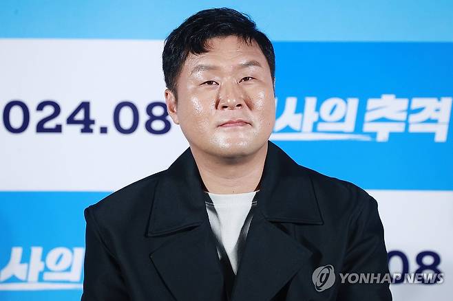 (서울=연합뉴스) 진연수 기자 = 배우 윤경호가 23일 서울 용산구 CGV용산아이파크몰에서 열린 영화 '필사의 추격' 제작보고회에서 질문을 듣고 있다. 2024.7.23