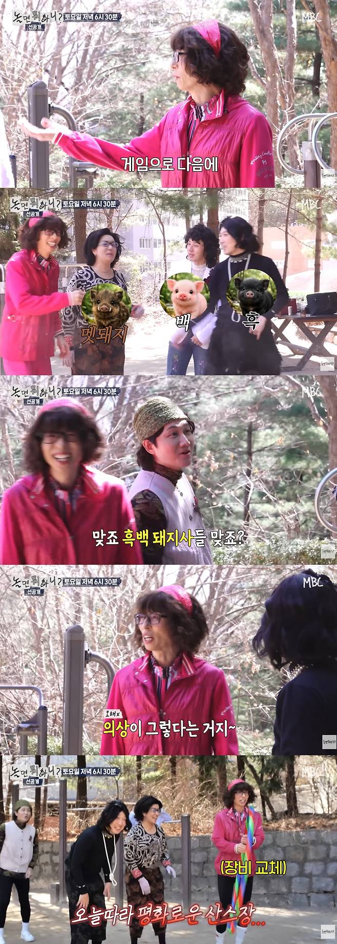 허경환은 백돼지, 하하는 흑돼지, 랄랄은 멧돼지라는 말에 랄랄이 항의를 해봤지만 이용진은 "맞죠, '흑백 돼지사들' 맞죠?"라고 놀려 웃음을 자아냈다.