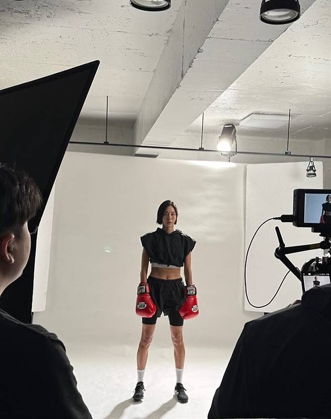 특히 잘록한 허리라인을 드러낸 크롭 상의는 그녀의 탄탄한 복근을 강조하며, 간결하면서도 도발적인 애슬레틱 무드를 연출했다.