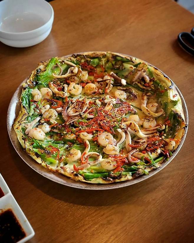 ▲메뉴: 동죽칼국수 9,000원 / 새우해물파전 14,000원