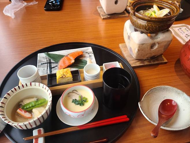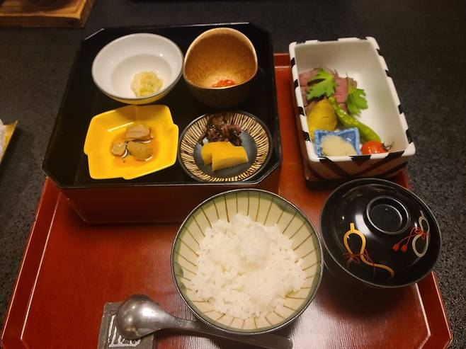 저녁은 객실에서, 아침은 별도 장소 가서 먹는 방식이였는데