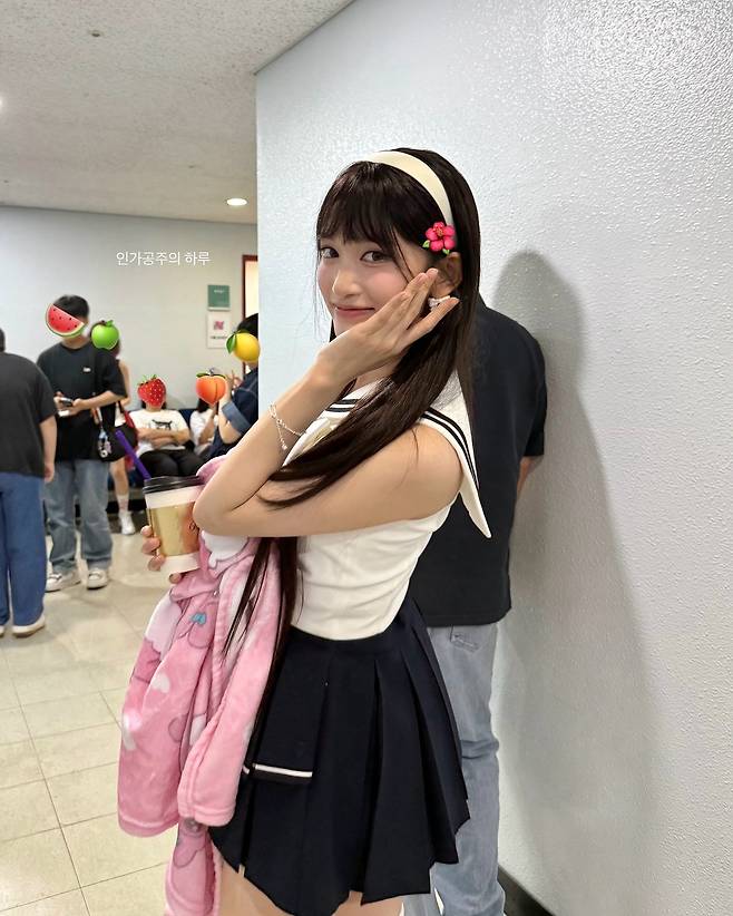 아이브의 막내 이서가 인스타그램을 통해 공개한 대기실 비하인드 컷이 화제를 모으고 있다. 화사한 조명 아래서 활짝 미소 짓는 이서는 세일러 칼라 상의와 네이비 플리츠 스커트를 매치해 소녀감성을 가득 담은 교복룩을 선보였다. 아이보리 컬러 헤어밴드와 귀 옆의 플라워 포인트가 얼굴선을 더욱 또렷하게 살리며, 아이돌 특유의 러블리 무드를 배가시켰다.