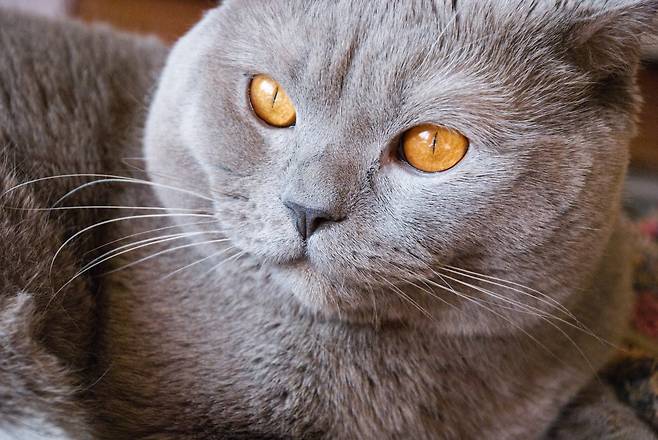 브리티쉬 숏헤어는 체셔 고양이와 마찬가지로 조금 심술궂어 보이는 얼굴을 가지고 있어요. 통통한 볼, 짧고 위로 뻗은 코로 인해 이런 느낌을 받게 되는 거라고 해요.