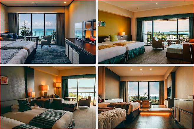 객실 대부분은 바다를 향해 열려 있어, 창밖으로 요나하 마에하마 비치의 풍경이 펼쳐집니다.