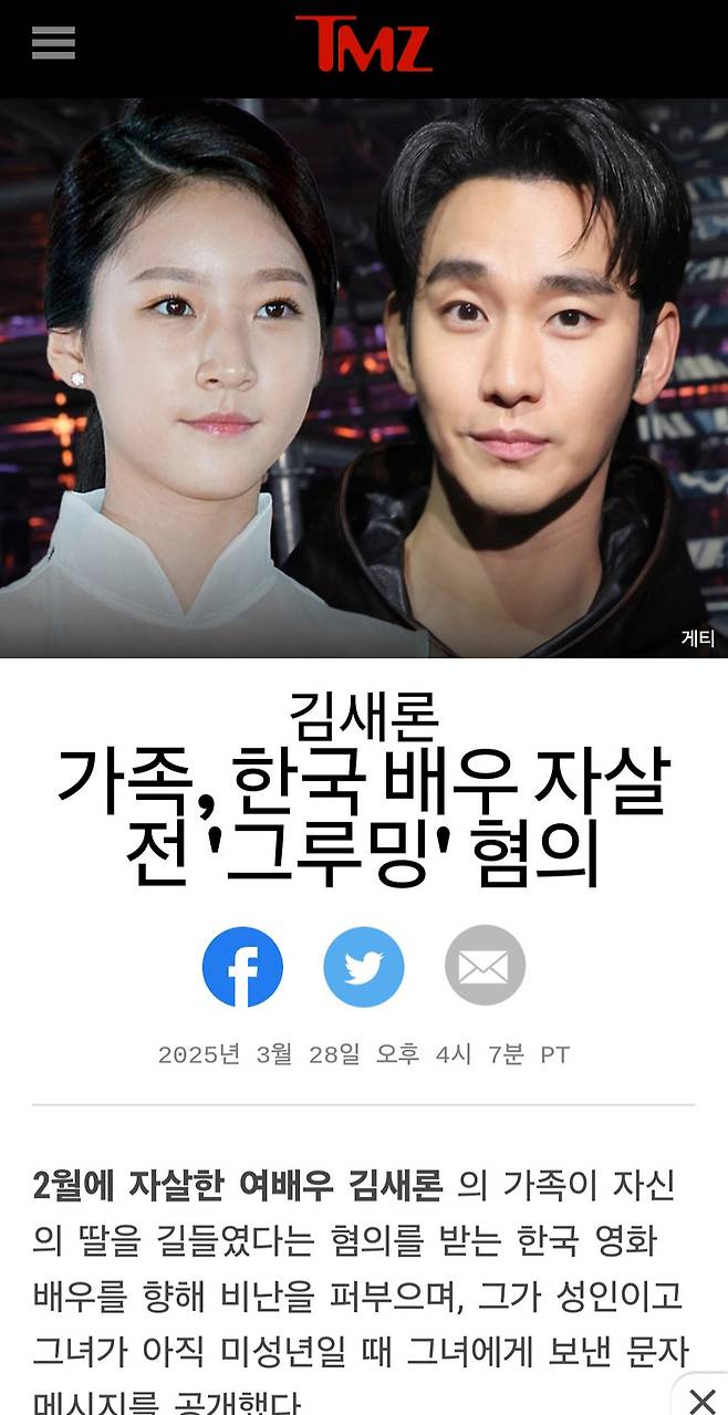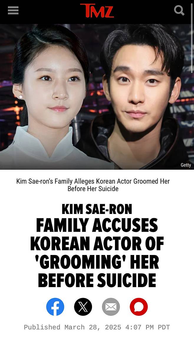 출처: https://www.tmz.com/2025/03/28/actress-kim-sae-ron-family-accuse-korean-actor-kim-soo-hyun-grooming/