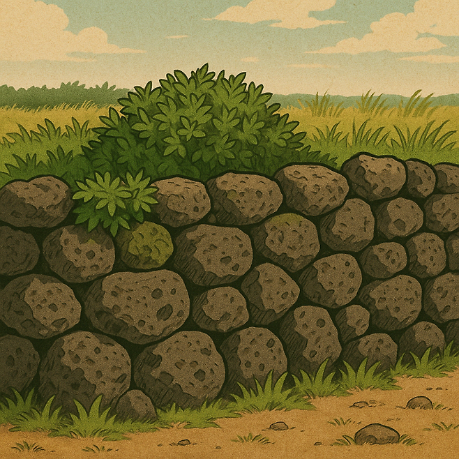 그래서 제주 돌담에는 바람의 길이 있습니다. 돌 자체에 있는 구멍과 돌 사이사이의 틈이 바람에게 길을 내어줍니다. 제주는 태풍이 엄청 세게 불어서 제아무리 튼튼한 담이라고 해도 쓰러질 수밖에 없습니다. 그렇지만 이 얼기설기한 돌담은 역설적으로 완벽하지 않아서 강한 바람을 견뎌냅니다. 바람의 길을 따라 강한 힘이 분산되고 오래오래 자리를 지킵니다.