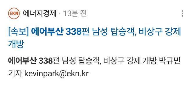 에어부산, 남성승객이 비상구 강제 개방