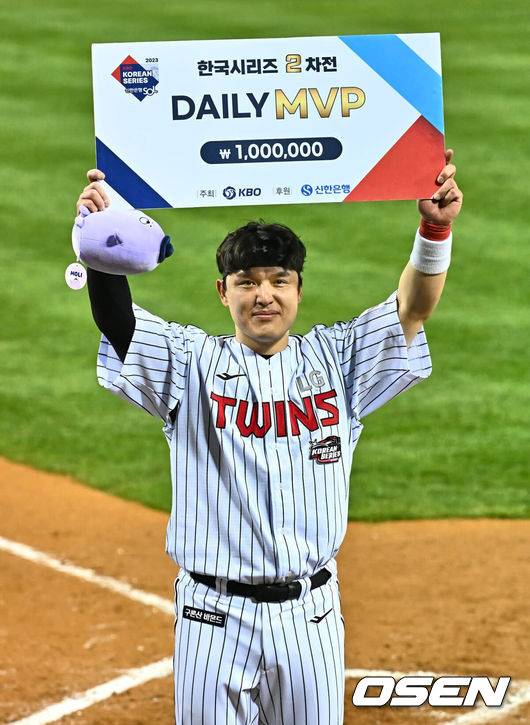 2023 한국시리즈 MVP는 오지환 선수였습니다. 오지환 선수의 활약은 시리즈 MVP를 받기에 충분했습니다. 기자단 투표에서 무려 86%의 득표율(투표 인원 93표 중 80표)을 획득했을 정도였으니까요.