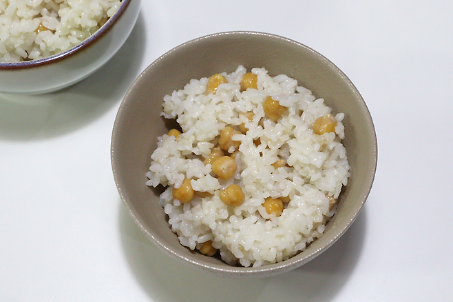 병아리콩을 밥에 섞어 함께 지은 음식으로 영양소와 식이섬유가 풍부해 건강에 좋습니다.