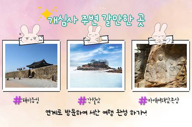 뿐만 아니라, 개심사에서는 겹벚꽃과 같은 다양한 종류의 벚꽃이 천년 고찰 개심사와 어울려 마치 시간을 거슬러 올라간 듯한 운치를 선사합니다.