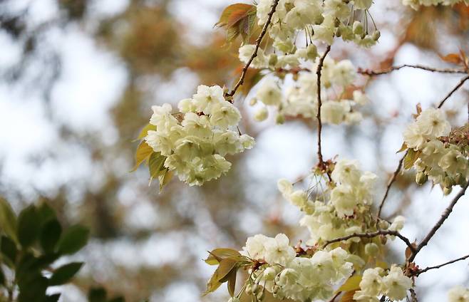 일반 벚꽃과 달리 연둣빛을 머금은 청 벚꽃은 마치 봄의 전령사가 속삭이는 듯한 신비로움이 내재되어있죠. 경내를 한껏 채운 청벚꽃은 천년의 역사를 간직한 고찰과 잘 어우러져 봄의 선물과도 같습니다.
