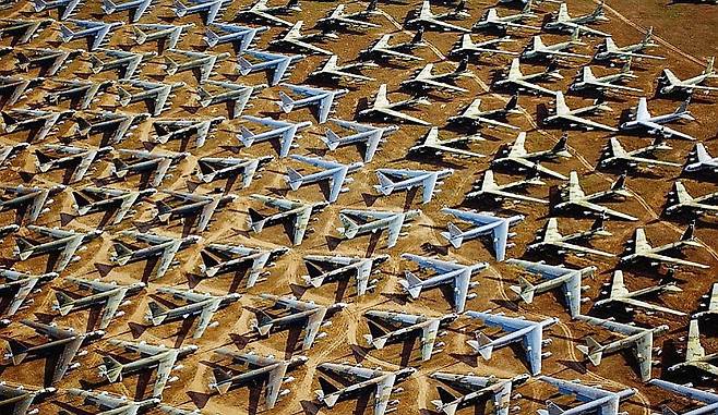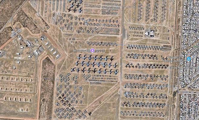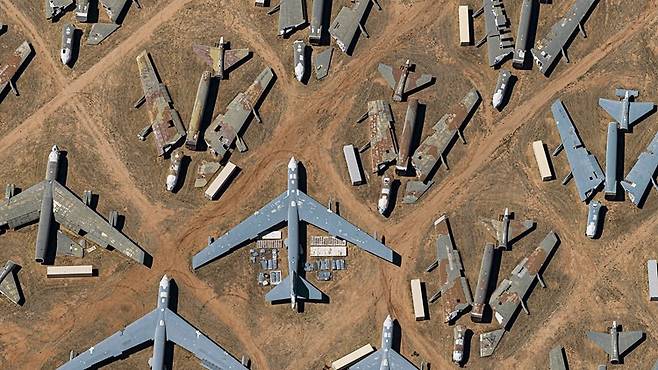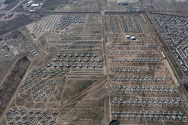 미국 남서부의 건조한 모하비 사막과 애리조나주 토손 인근의 광활한 사막지대는 세계적인 항공기 보관·폐기 장소로 잘 알려져 있다. ‘비행기 무덤(Aircraft Boneyard)’으로 불리는 이 지역들은 폐기된 항공기들이 질서 정연하게 줄지어 늘어선 장관을 이루며 항공 산업의 흐름과 변화를 반영하고 있다.