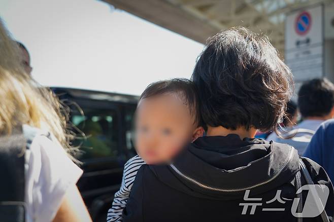 (서울=뉴스1) = 레바논 체류 재외국민들이 4일(현지시간) 레바논 베이루트 국제공항에서 귀국을 준비하고 있다. (외교부 제공)2024.10.5/뉴스1