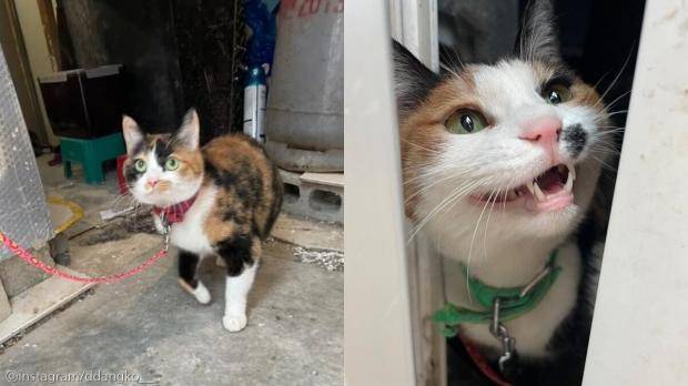 이 고양이들은 창고 안에 몇 년째 목줄에 묶여 살고 있다. 현선 씨는 "할머니가 키우시는 고양이인데, 한 마리가 로드킬로 세상을 떠나자 남은 두 고양이를 묶어서 기르고 있다고 했다"고 설명했다.