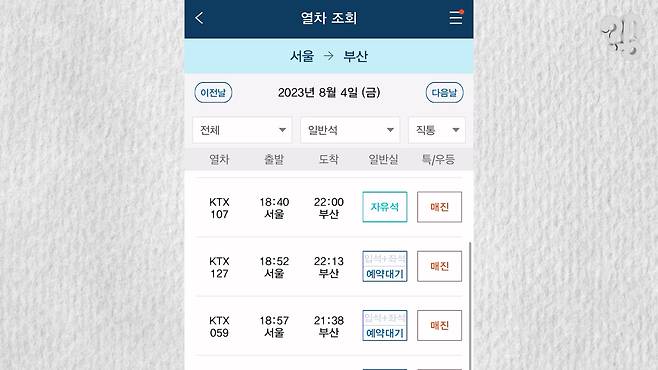 이번 여름휴가는 부산 해수욕장에서 신나는 물놀이를 할까? 여수 밤바다를 거닐며 감성감성하게 보내볼까? 음... 아니면 대전에 가볼까?! 그래 일단 KTX 승차권부터 봐야겠다 싶어 KTX 앱을 켜니, 퇴근하고 출발하는 황금 시간대는 어디든 전~부 매진이다. 유튜브 댓글로 “KTX 표는 2~3주 뒤 표도 전부 매진이던데, 도대체 왜 이렇게 표 구하기가 어려운지 알아봐 달라”는 의뢰가 들어와 취재해 봤다.