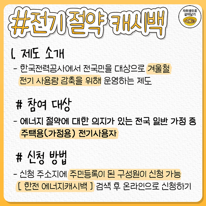 올해 꼭 신청해야 할 전기&가스비 캐시백 제도