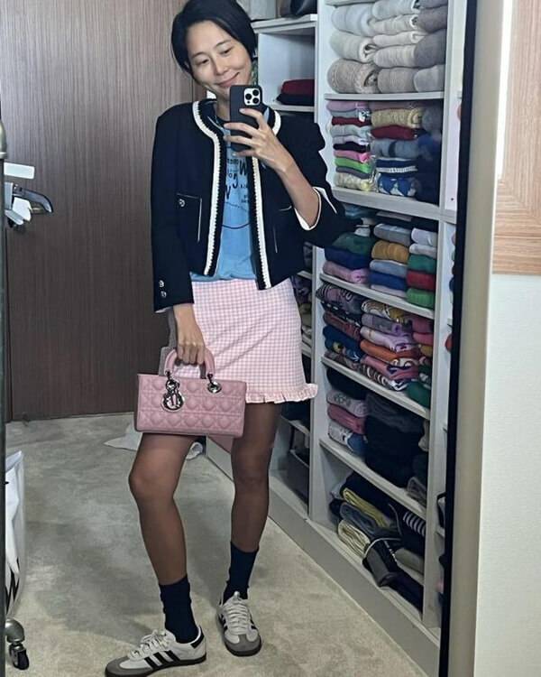 패셔니스타 김나영도 삼바 비건을 활용해 유니크한 패션 센스를 자랑했다. 김나영이 선택한 삼바 비건은 화이트 컬러에 스웨이드 앞코가 캐주얼한 옷차림에 어디든 잘 어울릴 디자인이다. 김나영은 체크 패턴의 핑크 미니스커트에 블랙 크롭 재킷을 입어 걸리시한 룩을 연출했으며 발목 위로 오는 블랙 컬러의 양말과 함께 삼바 비건을 매치해 깔끔한 아웃핏을 완성했다.