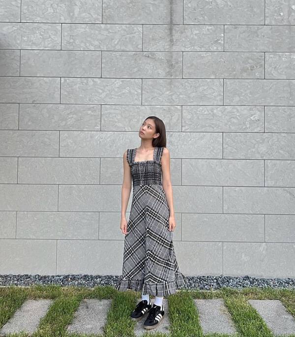 아디다스를 유행하게 만든 장본인, 제니의 아디다스 스타일링을 살펴보자. 제니는 사랑스러운 블랙 체크 원피스와 아디다스의 삼바를 흰 양말에 매치해 트렌디하게 연출했다. 제니가 이 모델을 착용한 사진을 인스타그램에 올리자 여성 사이즈 상품의 품절이 지속되며 가격은 50만 원 중반까지 치솟았다고. 제니는 뛰어난 패션 소화력으로 삼바의 인기에 힘을 실었다.