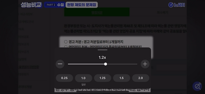 계속해서 배속으로 보고 싶으면 톱니바퀴를 누르고 재생속도를 바꾸시면 됩니다.