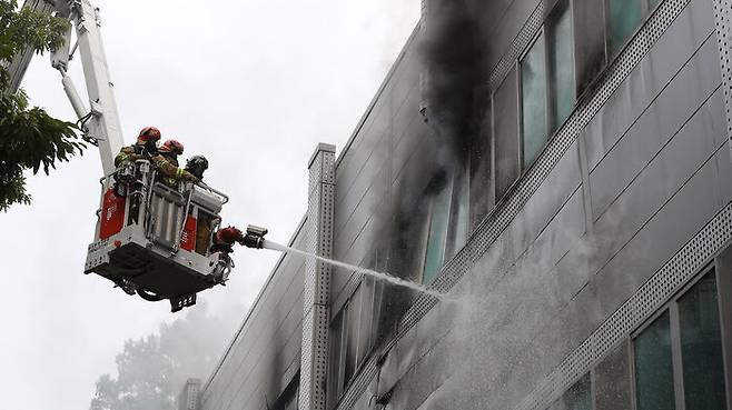 소방당국은 건물 내부에는 탈 수 있는 물질이 많고 연기가 퍼지면서 진화하는 데 어려움을 겪고 있습니다.