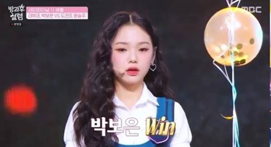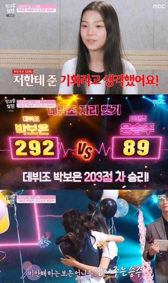 데뷔조를 지키게 됐음에도 같은 학년 친구와의 대결로 큰 부담감을 느낀 박보은 연습생은 끝내 눈물을 보였고 "저희 진짜 열심히 준비했는데, 재밌게 무대한 거 같아 승주한테 고맙다. 승주도 잘했어"라며 서로 다독여 훈훈함을 자아냈다.