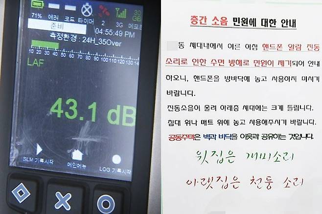 경기도 고양시의 임대아파트에 거주 중인 한 입주자 역시 심각한 소음 문제를 겪고 있다는데, 그는 “옆집이 통화를 하거나 손님이 찾아온 것도 바로 알 수 있다”라며 “한밤중에는 내 집인데도 소곤소곤 말하려고 주의하고 있다”라는 내용을 전했다.