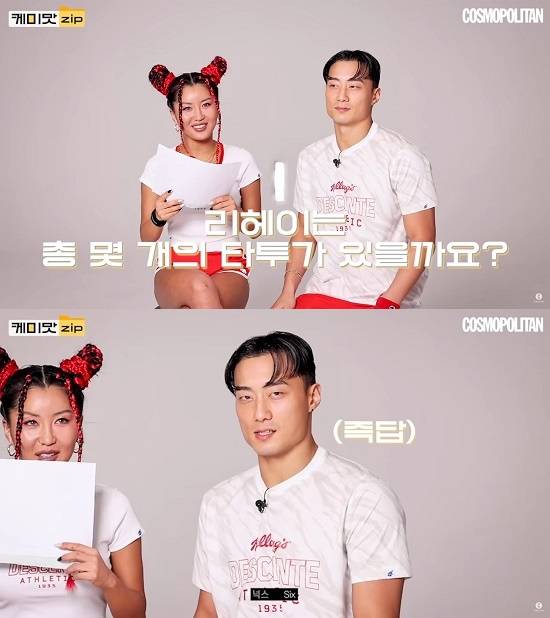 넉스는 "리헤이의 타투 개수"를 묻는 질문에 "6개"라고 답했다. 이어 리헤이가 타투 위치를 설명했다. 그는 옆구리 타투를 가리키며 "부모님이 알면 안 된다"고 덧붙였다. 리헤이가 타투 6개 중 1개에 대한 설명을 빼먹자 넉스는 "그럼 5개인데?"라며 지적했다. '으른미' 넘치는 커플답게 타투 위치까지 파악하고 있었다.