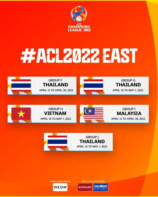 2022 ACL 동아시아 권역 조별리그, 태국·베트남·말레이시아 개최