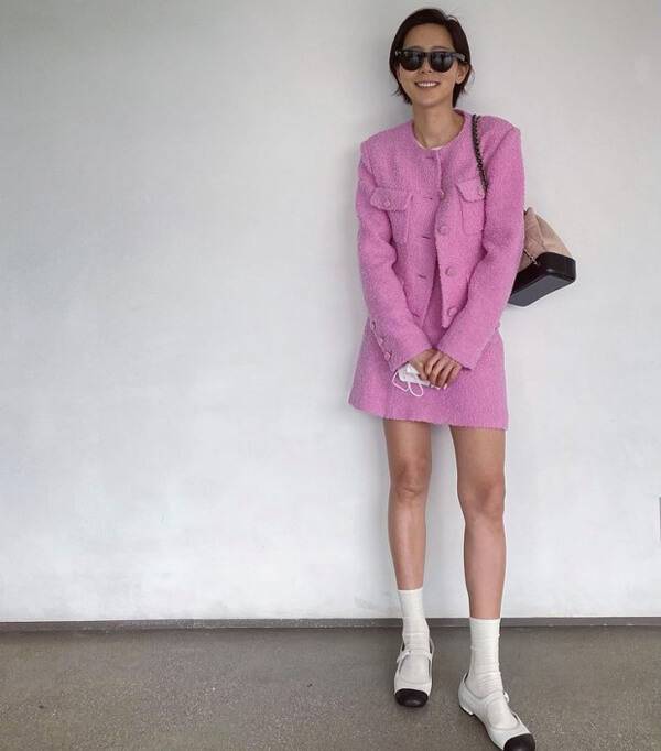 세트 세트! 세트로 입으면 2배로 예쁜 셋업 룩도 빼놓을 수 없는 아이템이다. 차정원은 재킷과 미니스커트로 구성된 셋업 룩을 선택해 특유의 깔끔한 느낌의 스타일링을 완성한 모습. 하지만 너무 단정해 면접룩처럼 보일 수 있으니, 컬러풀한 가방으로 활기를 더해주는 것도 하나의 방법이다.