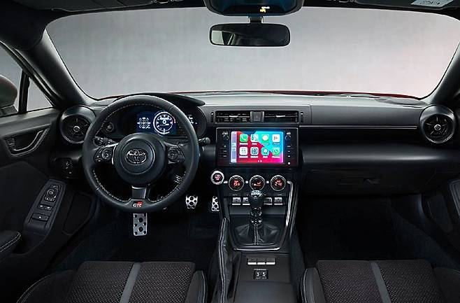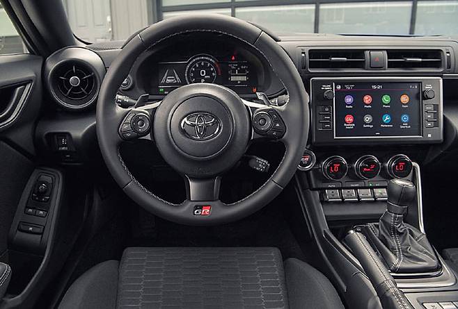토요타 GR86은 첨단의 차량도 아니고, 대단한 성능의 차량은 더더욱 아니다. 오늘날의 관점으로 본다면 대략 1990년대의 기술과 감성의 파워트레인에 약간의 요즘 감성을 더한 디자인을 가지고 있다고 할 수 있을 것이다. 실내에도 전자화가 일부 돼 있는 걸 볼 수 있지만, 클러스터와 공조 장치의 구동은 디지털 기술이 적용돼 있는데, 그 형태는 마치 터보 압력 게이지와 오일 압력 게이지 등 과거의 아날로그 게이지 감각의 디자인을 보여준다.
