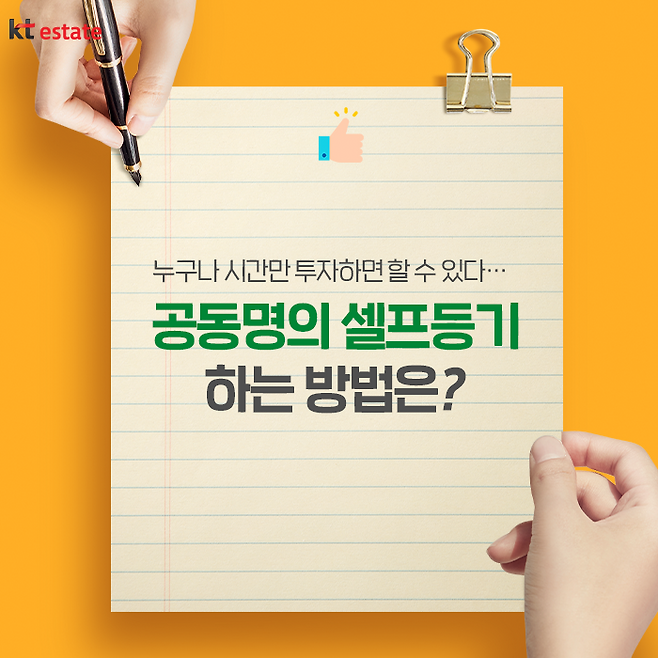 금일은 공동명의 셀프등기를 하는 방법에 관해 알아봤습니다. 그동안 등기라 하면 매우 복잡한 절차가 있다고 생각하는 경우가 많았는데요. 실제 필요한 서류만 잘 준비해두면 그리 어렵지 않게 등기를 진행할 수가 있음을 잘 알 수 있습니다. 이 글을 읽는 구독자 여러분께서도 시간 여유만 있다면 한 번 셀프등기에 도전해보심이 어떨까요?