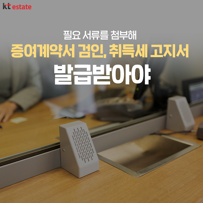 서류 준비가 끝났다면 관할 시군구청에 방문합니다. 먼저 앞서 작성한 증여계약서를 들고 민원실로 향합니다. 민원실에 가보면 부동산거래신고 등 이와 관련한 창구가 있는데요. 여기서 비용을 지불하고 증여계약서에 검인(도장)을 받으면 됩니다.