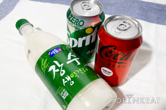 막걸리와 사이다, 콜라를 준비했다. 막걸리는 깔끔한 뒷맛을 가진 장수 막걸리를 골랐다. 조금이라도 가볍게 마시고 싶은 마음에 사이다와 콜라는 모두 제로 슈거 제품을 선택했다.