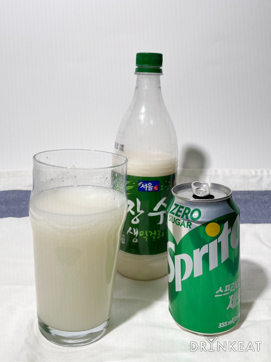 막·콜을 만들기 전, 맛 비교를 위해 막·사를 먼저 만들었다. 레시피는 간단하다. 막걸리와 사이다를 2:1 비율로 섞기만 하면 끝!
