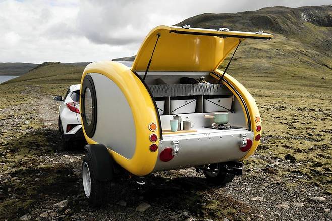 차체 중량이 매우 가벼워 전기차 주행거리에 영향을 주지 않을 정도지만, 높은 내구성을 자랑한다. 공기역학에 최적화된 디자인과 프레임리스 구조 덕분에 차체 중량은 490kg밖에 나가지 않는다. 이 정도면 전기차나 소형차에도 충분히 연결할 수 있는 무게다. 무게 중심은 낮게 설계돼 어떤 지형에서도 안정적이고 편안하게 여행을 즐길 수 있다.