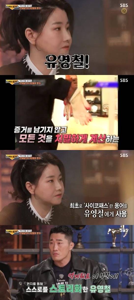 박지선은 "유영철은 8페이지 분량의 편지를 자필로 썼다. 틀려서 고친 흔적이 단 한 군데도 없다. 이것은 외부에 나가서 사람들이 볼 수 있다고 생각하고 쓴 편지라는거다. 다른 사람이 나를 어떻게 보고 생각하는지 신경쓰는 사람이고, 하나의 오차도 보이기 싫어하는 성격이다. 그런 면이 유영철의 범행에도 묻어있었다. 증거 하나 남기지 않으려는 특성을 보였다. 또 유영철이 잡혔을 때 이런 유형의 범죄자가 드물었다. 심리학자나 전문가들이 면담을 많이 했다. 사이코패스라는 용어도 유영철 사건으로 처음 나왔다. 또 유영철은 살인마에도 등급이 있다고 생각했다. 편지에 우월감이 가득 들어있다"고 했다.