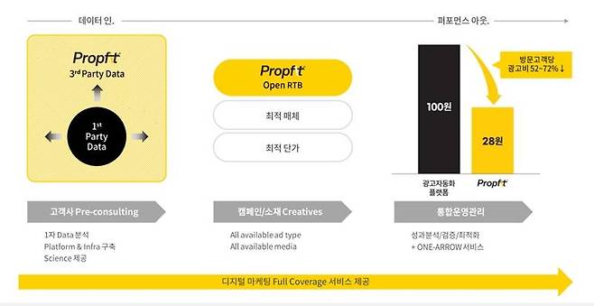 여기에 데이터 사이언티스트를 비롯한 데이터 전문가들의 인사이트가 더해진 DMP 시스템을 통해 높은 투자수익률과 해결방안을 도출한다고 퍼포먼스바이TBWA 측은 설명했다. 지난해 11월 기준 프라핏을 테스트한 결과 기존 완전 광고자동화플랫폼 대비 방문 고객당 광고비가 최대 48% 수준으로 집계됐다.