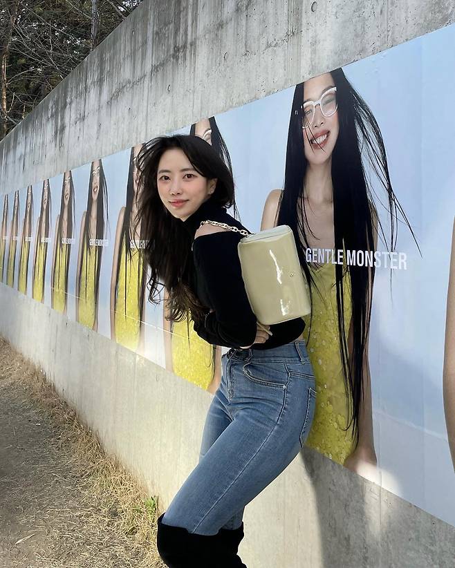 하이웨스트 청바지 그리고 싸이 하이 부츠를 매치해주었어요