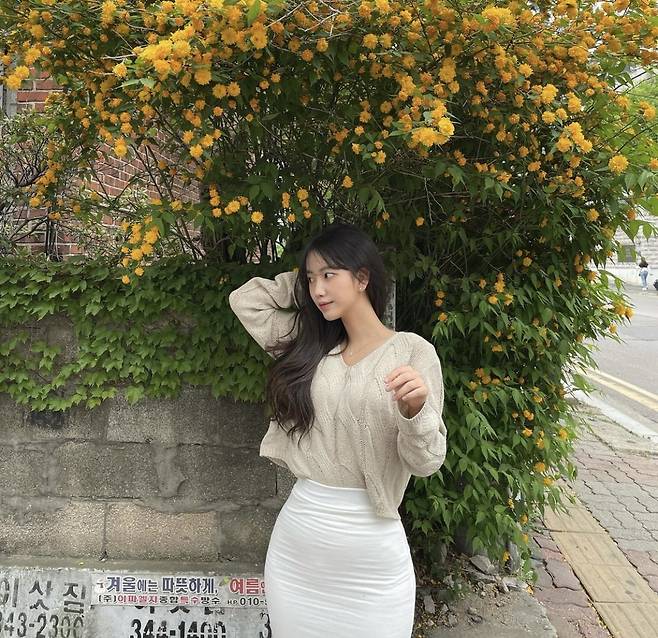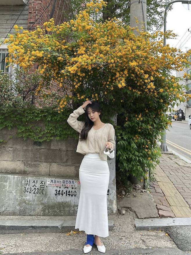 롱스커트와 매치하여 봄 데이트룩을 완성했어요:)
