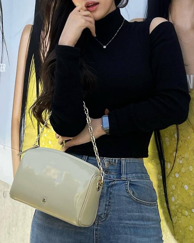 은근한 섹시한 무드가 느껴지는어깨 트임 폴라티는
