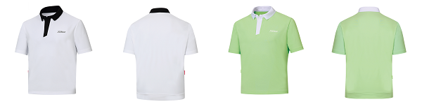 타이틀리스트 써머 셔츠 : 가장 기본이면서도 카라와 버튼 라인에 배색을 넣어 포인트를 준 반팔 셔츠입니다. 카라를 검은색으로 넣어 둔 만큼 눈에 잘 띌 뿐더러 연두색에 가까운 그린 컬러를 짚고 넘어가지 않을 수 없는데요. 여름의 파란 하늘 아래서 청량함을 줄 수 있는 아이템으로 이용하실 수 있습니다. 너무 과도하게 네온스럽거나 컬러가 붕 뜨는 듯한 느낌이 아니기 때문에 어떤 분께든 잘 어울릴 것 같습니다.