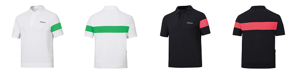 타이틀리스트 써머 셔츠 : 굵은 라인을 포인트로 이용했습니다. 베이스가 되는 색과 대비가 잘 되는 색이 라인으로 들어가 있는데요. 화이트에는 그린, 블랙에는 코랄에 가까운 레드가 조합되어 있습니다. 경량 원사를 이용한 얇은 스웨터와 같은 소재라 더위를 걱정하실 수도 있지만, 메쉬 소재가 같이 들어가 있어 통풍에 용이합니다.