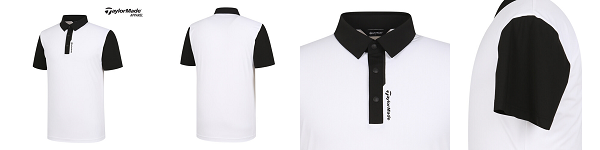 테일러메이드 배색 카라 셔츠 : 블랙과 화이트로 깔끔 그 자체인 반팔 셔츠입니다. 소매와 카라, 버튼 라인에 검은색을 넣어 포인트로 사용하고 있습니다. 소매까지 같이 배색이 들어가 좀 더 다채로워 보이는 효과가 있습니다. 그리고 또 하나의 매력 포인트로는 카라 라인에 들어간 테일러메이드의 로고 패치가 있어요. 테일러메이드의 이번 신상품들이 이렇게 버튼 라인에 포인트를 주는 특징을 가지고 있는데, 반응이 좋아 여러 매장에서도 쉽게 만나 보실 수 있습니다.