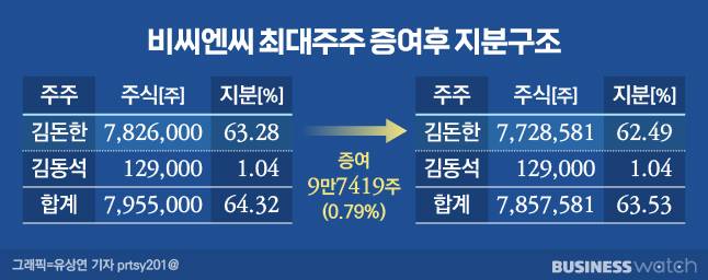 [거버넌스워치]상장 비씨엔씨 오너 수십억 증여의 실체..차익 '도로 출연'