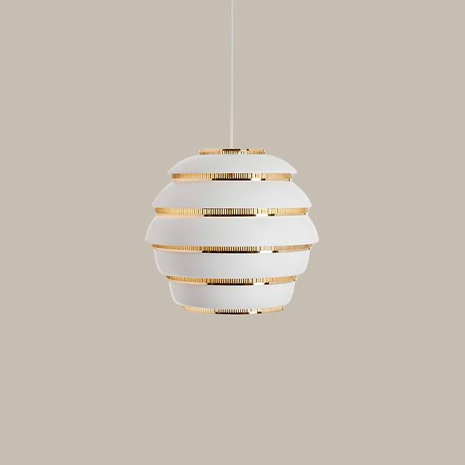 벌집을 연상케 하는 펜던트 조명. 화이트 컬러의 알루미늄 쉐이드와 빛을 필터링하는 황동 강철 링으로 구성되어 있다. 조명을 켰을 때 빛이 넓게 확산돼 공간을 꽉 채워주며, 독특한 조형미로 불을 켜지 않아도 그 존재감이 남다르다.